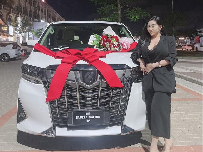 Di Hari Raya Idul Fitri, Pamela Safitri mendapatkan hadiah THR sebuah mobil mewah yakni Toyota Alphard Vellfire berwarna putih. Wah, keren!