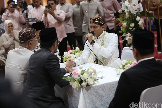 Dalam momen sakral tersebut Qausar mengucap ijab kabul dalam satu traikan napas. (Foto: Palevi/detikcom)