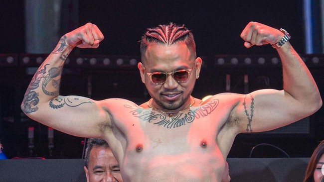 Roy Ricardo tampil dengan jubah merah dan sarung tinju merah. Roy juga didampingi sang kakak, Melaney Ricardo.
