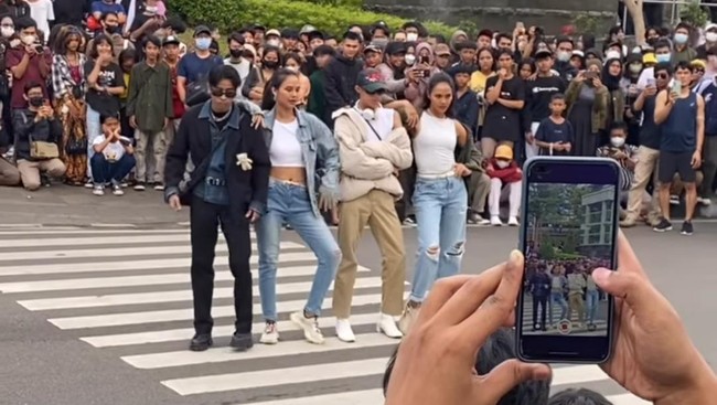 Aksi Valerie dan Veronica mendapat apresiasi dan tepuk tangan dari bocah-bocah yang nongkrong di Dukuh Atas, Jakarta Pusat.