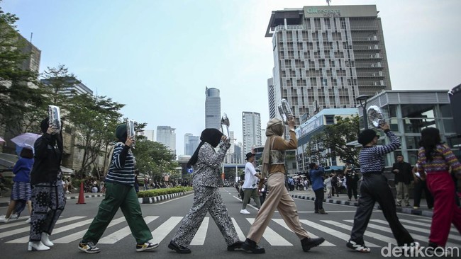 Pantauan detikcom, sekitar pukul 10.00 WIB beberapa orang kembali melakukan catwalk di zebra cross Citayam Fashion Week untuk membuat konten di media sosial.