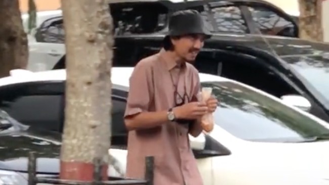 Ia tampil santai dengan bucket hat, kemeja dan celana hitam panjang serta sandal kala menikmati jajanan tersebut. Gaya santainya itu pun sempat membuat beberapa netizen salah fokus dan mengiranya sebagai tukang parkir.