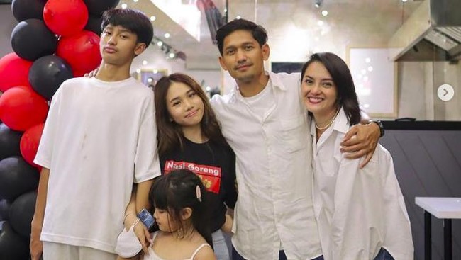 Dhofin kini terlihat mejeng bareng foto bersama dengan Ibnu Jamil, Ririn Ekawati, dan anak-anak sang istri.