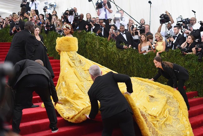 Kala itu Rihanna tampil dengan dress kuning emas panjang rancangan Guo Pei. Pujian pun diberikan oleh para pengamat fashion saat penyanyi berusia 32 tahun itu menginjakkan kakinya di red carpet.