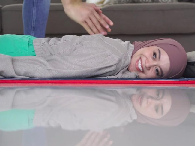 Lesti Kejora pada aslinya terlihat tertawa justru bayangannya tak ikut bergerak. Momen itu terekam dalam video di channel YouTube Beemz Aryo.