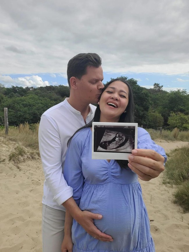 Gracia Indri memperlihatkan baby bump dan foto hasil USG ketika mengumumkan hamil anak pertama. Foto: Instagram @graciaz14