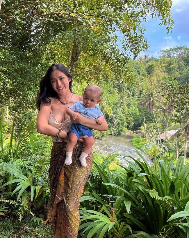 Jakarta - Jessica Iskandar momong putranya yang kedua Don Azaiah Jan Verhaag. Ini pertama kalinya ia mengajak sang putra ke sawah.