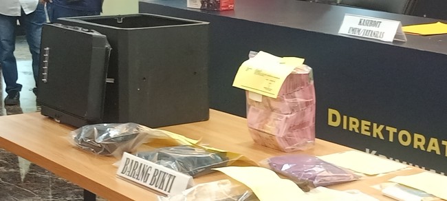 Jakarta - Asisten Rumah Tangga (ART) Dara Arafah yang membawa kabur brankas berisi uang ditangkap polisi. Barang bukti brankas tersebut dan uang pun ditampilkan.
