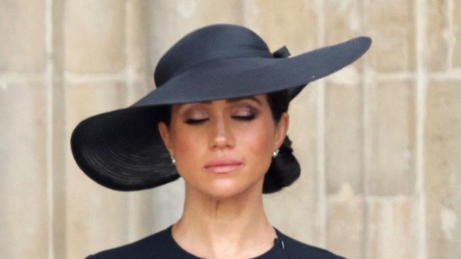 Meghan Markle menangis saat meninggalkan Westminster Abbey setelah pemakaman kenegaraan Ratu Elizabeth. Meghan Markle terlihat emosional.