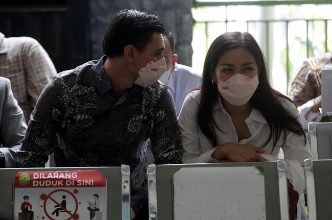 Jessica Iskandar datang bersama suaminya, Vincent Verhaag, ke Pengadilan Negeri Jakarta Selatan, Rabu (5/10/2022). Foto: Pahlevi/detikcom