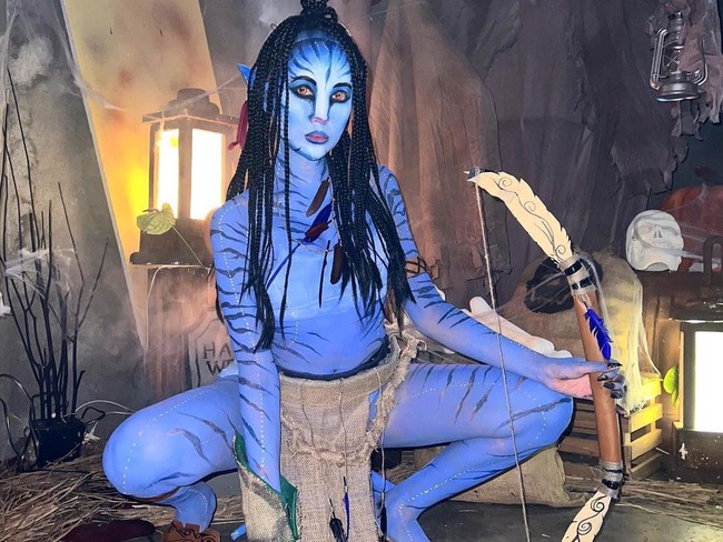 Momen Halloween juga dirayakan oleh Lucinta Luna. Ia berdandan total dengan maksud cosplay menjadi Avatar.