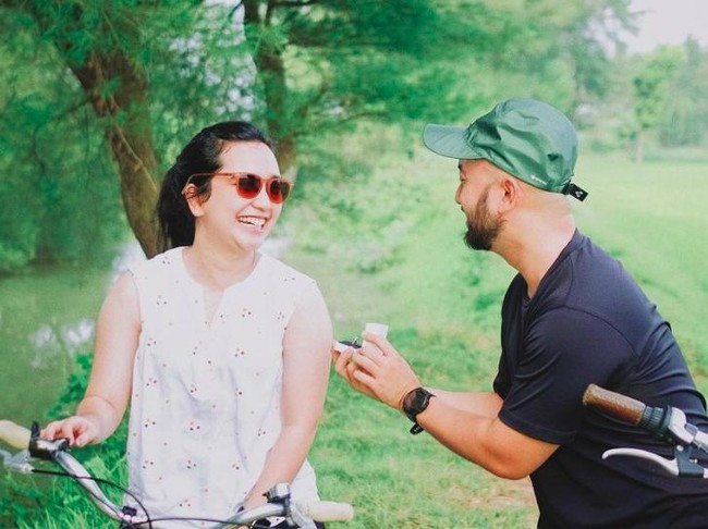 "Mei 2022. Dilamar di pinggir sawah Bantul pas lagi sepedaan abis itu dirayakan dengan makan2 Bebek Umar Plenteng uwuuu mantaap. Terima kasih Mas Pep yang sudah mengabadikan @matisyahdu @basikalwithview," tulis Rachel Amanda dalam Instagram miliknya dilihat detikcom, Senin (14/11/2022).