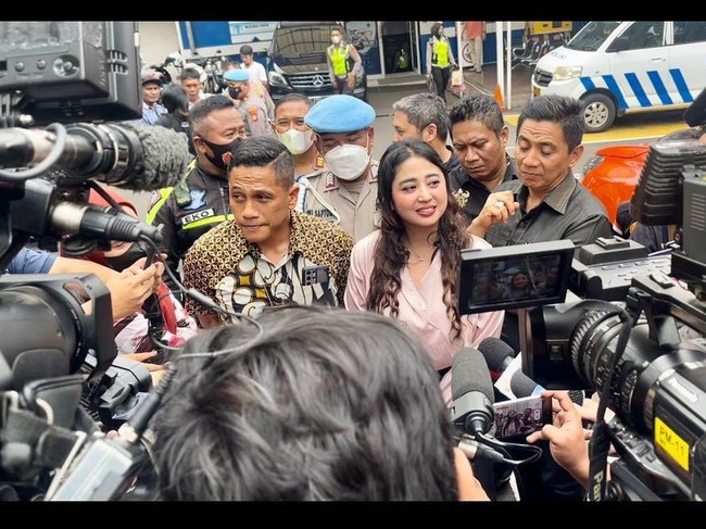 "Mba Dewi kebetulan hadir di Polres Metro Depok untuk memberi keterangan tambahan, jadi tadi selain Mba Dewi juga ada beberapa saksi dari asistennya Mba Dewi dan juga ada dari orang yang tinggal di rumah mba Dewi, yang mengetahui apa yang kemarin diposting dan kita laporkan kemarin jsdi kita mintai keterangannya," kata Sandy Arifin saat ditemui di Polres Metro Depok, Jumat (25/11/2022).