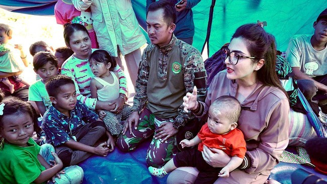 Jakarta - Ashanty terlihat memberikan bantuan kepada korban gempa Cianjur. Yuk lihat aksinya.