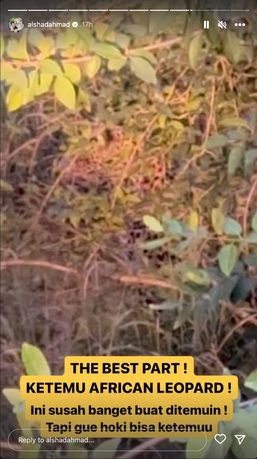 Alshad Ahmad bertemu dnegan leopard. Foto: dok. Instagram Story Alshad Ahmad |