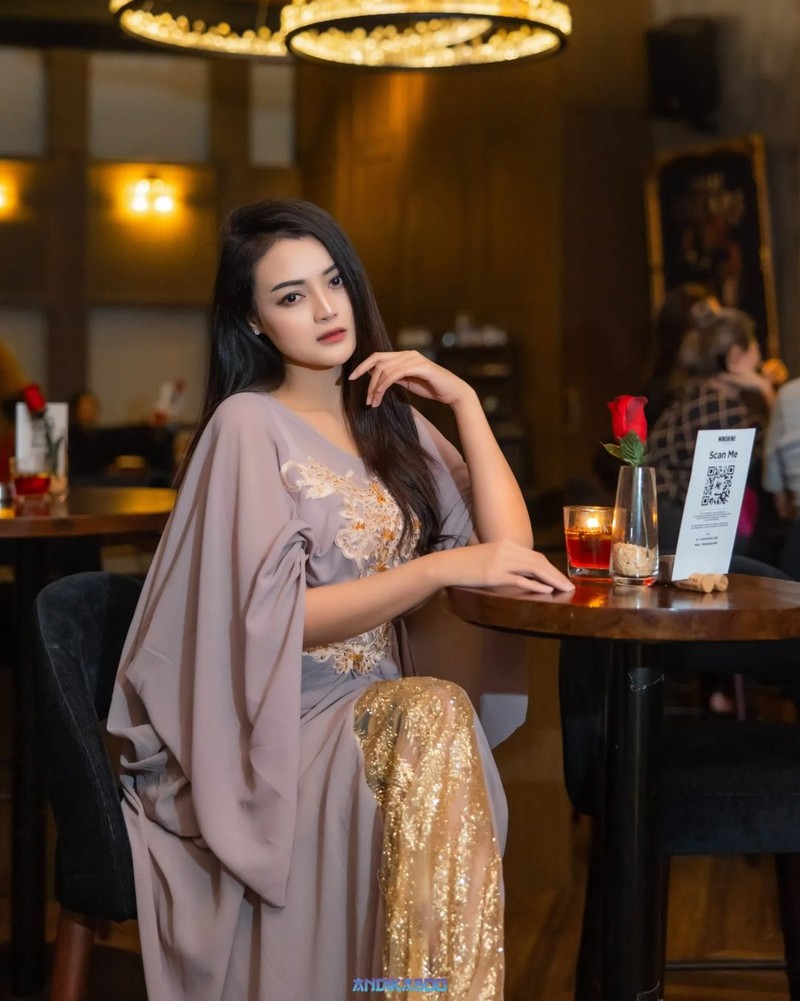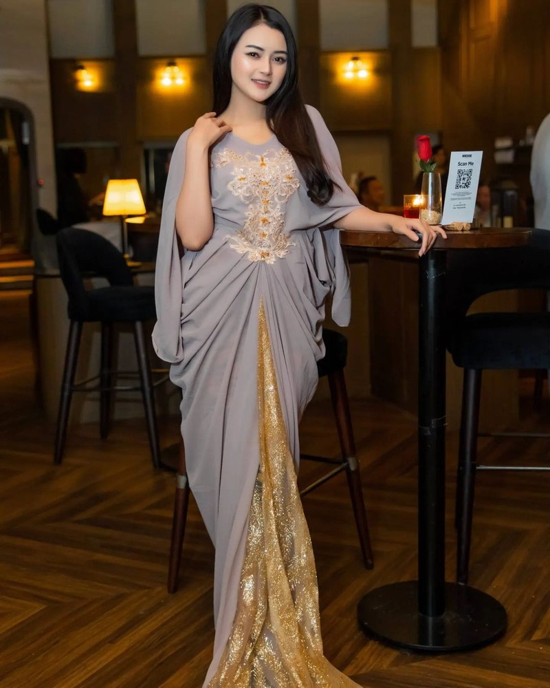 Pesona Adelia Zizi pakai dress abu-abu. (Foto: Dok. Instagram)