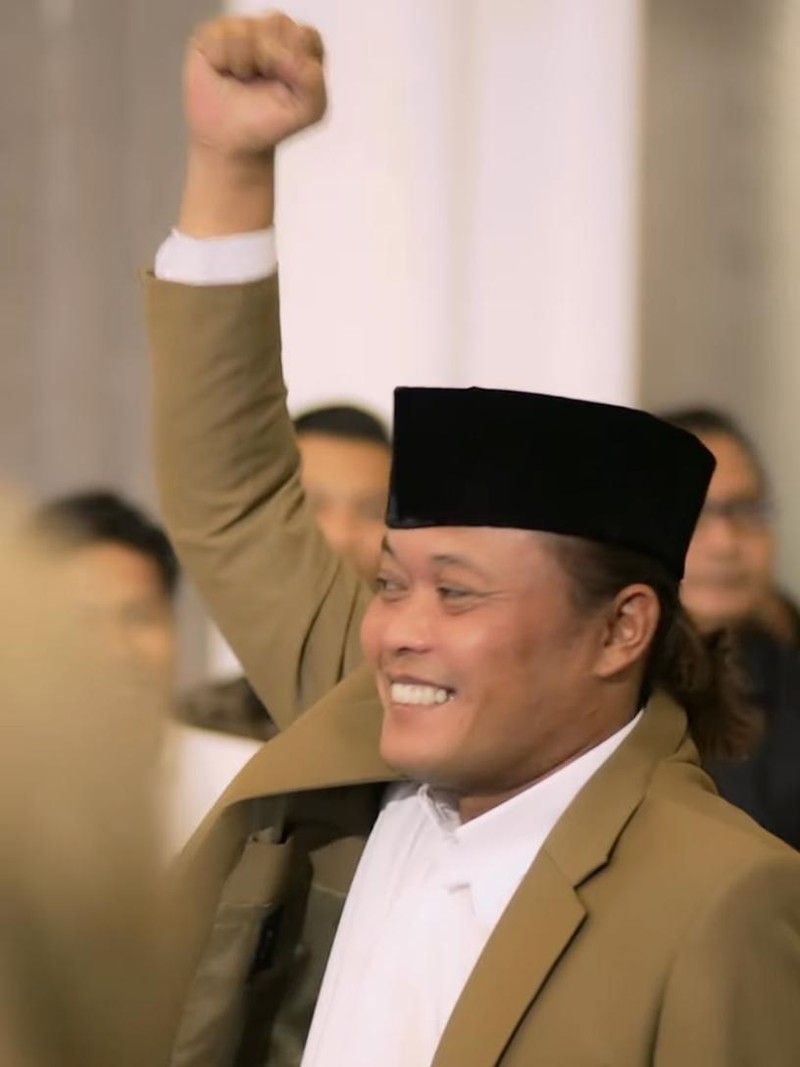 Sule yang memakai peci hitam tertawa semringah menyaksikan momen lamaran Rizky Febian dan Mahalini. Foto: dok. Instagram