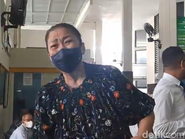 Melihat sang anak memasuki ruang sidang untuk menjalani mediasi dengan Ari Wibowo, sang ibunda seketika menangis dan menyebut ia tengah memikirkan nasib dari cucu-cucunya.