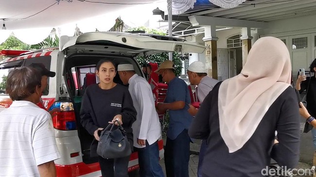 Saat jenazah tiba di rumah duka Tyas Mirasih tak pernah menjauh. Tyas Mirasih juga ikut duduk di dalam ambulance. Wajah Tyas Mirasih terlihat sangat sembab.