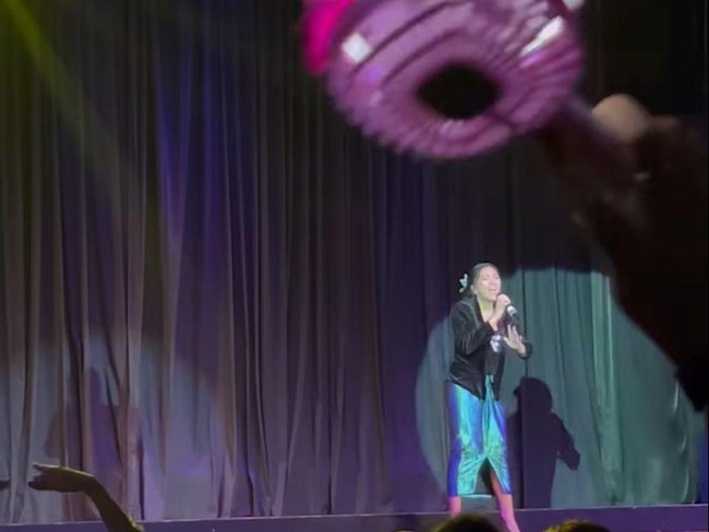 Alleia tampil cantik dengan kebaya hitam dan rok songket bernyanyi menghibur semua yang hadir di momen kelulusannya. Foto: Instagram Meisya Siregar
