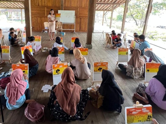 Lokasinya masih sama di Kampung Joglo Tanjung Lesung tempat Migi akan membuka kelas melukis tersebut.