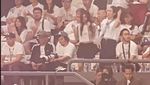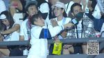 Syahnaz dan Nissya terekam lincah memberikan dukungan kepada Raffi Ahmad dengan loncat-loncat di tribun penonton. Sedangkan Jeje tetap duduk. Foto: dok. Instagram Julianaparmadi dan YouTube.