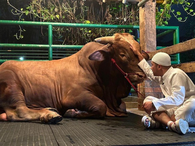 "Takbiran bersama Wariso," tulisnya seperti dikutip detikcom, Kamis (29/6/2023). Bersamaan dengan foto dirinya mengelus-elus kepala si sapi.
