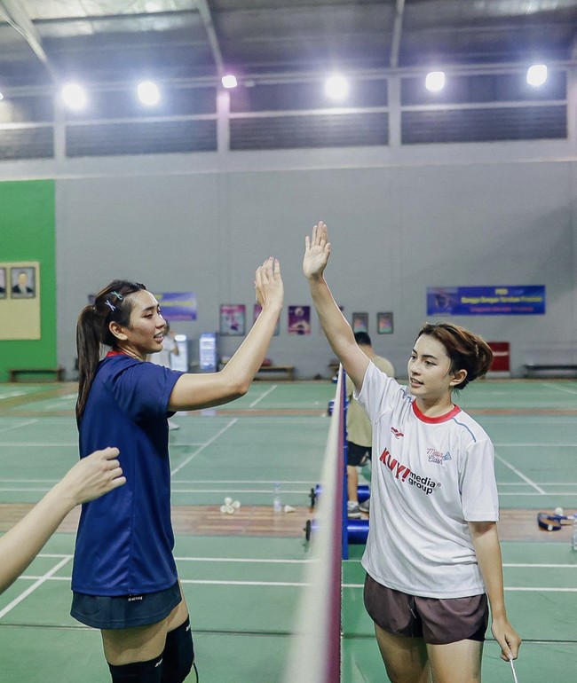 Jakarta - Yolla Yuliana turut tampil di BNI Media Clash 3.0. Bersama dengan Sintya Marisca, ia pun berlatih badminton.