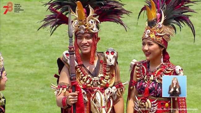 Kaesang Pangarep menjadi salah satu dari lima pemenang busana terbaik dalam perayaan HUT ke-78 RI di Istana Merdeka. Kaesang dan Erina Gudono memakai pakaian adat suku Minahasa.
