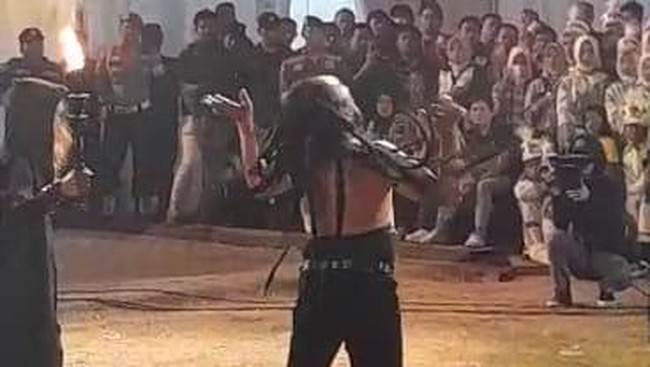 Saat melakukan aksi tersebut, terlihat ada seorang asisten yang memegang obor dan jongkok di depannya. Sayang, saat menyemburkan api, tiba-tiba si jago merah menyambar jenggot sang pesulap.