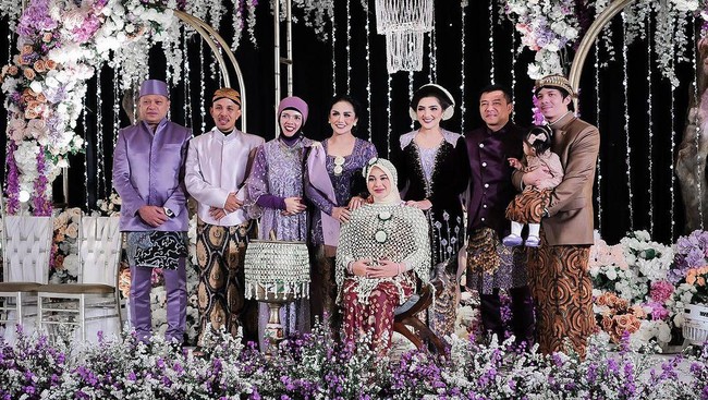 Pada momen acara Mitoni itu semua keluarga kompak memakai baju ungu yang jadi warna favorit Aurel Hermansyah.