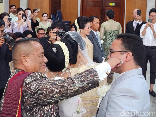 Tamu undangan yang hadir sontak berseru. Suara nyanyian Lea Simanjuntak menambah larut suasana. Pelangkah, ada juga dalam pernikahan anak Hotman Paris.