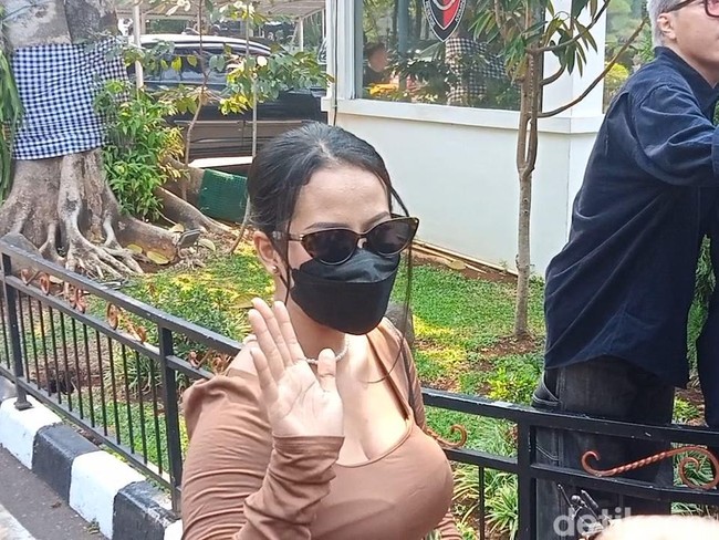 Jakarta - Siskaeee tiba di Polda Metro Jaya. Dia terlihat memakai baju berwarna coklat dengan rambut digelung.