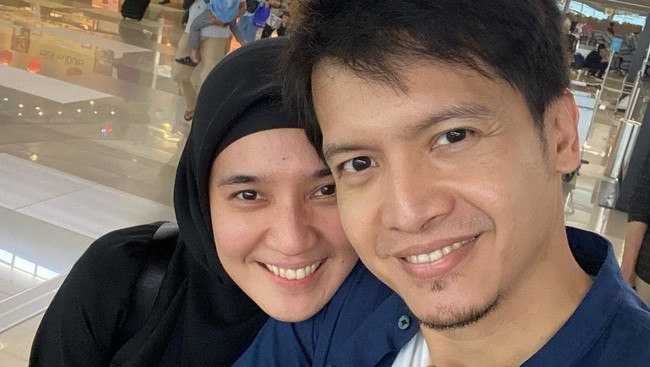 Mereka menjadi orang tua asuh untuk anak-anak di pondok pesantren yang mereka kelola. Dhini Aminarti terlihat menggenggam tangan sang suami di sampingnya.