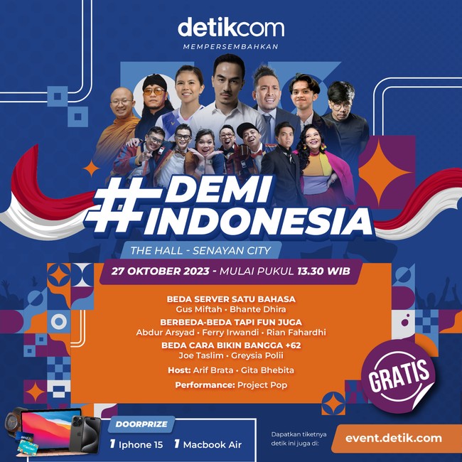 detikcom punya acara kece dalam rangka menyambut Hari Sumpah Pemuda yang bakal digelar pada 27 Oktober 2023, yakni Demi Indonesia. Demi Indonesia bisa jadi acara penuh inspirasi loh!