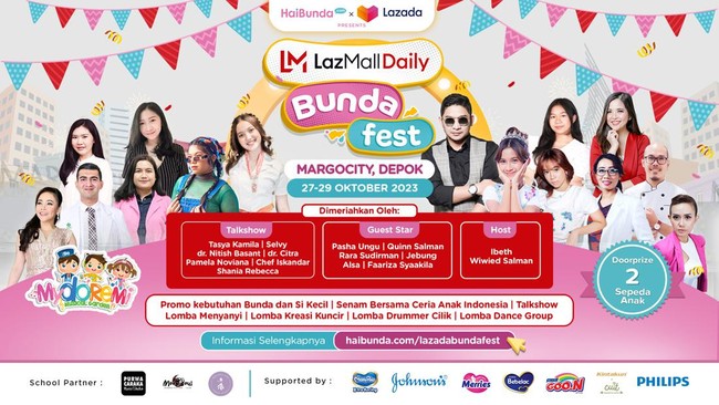 Yuk datang ke Margo City Depok sekarang juga dan jangan lewatkan keseruan LazMall Daily Bundafest. Acara yang digelar oleh Lazada ini turut didukung oleh Mamypoko, Johnson's, Merries, Philips, Bebelac, Goon, Cuit Baby x Kintakun.