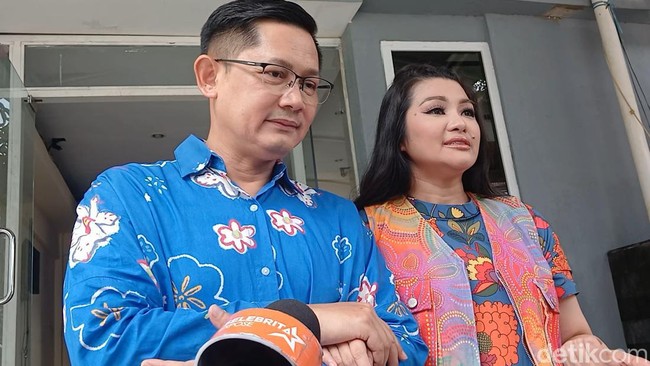 "Ya ditanyain terus, tapi sekarang sudah nggak pernah tanya," ucap Hendra Sumendap sambil memeluk sang istri.