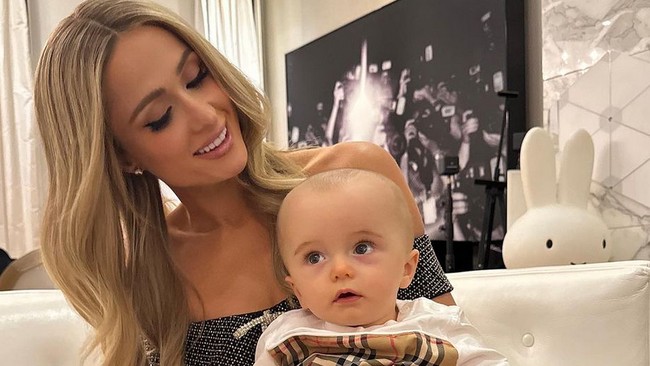 Paris Hilton juga membagikan video di mana dia menggendong putranya.