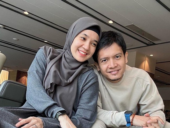 Pasangan suami-istri Dimas Seto dan Dhini Aminarti bersama Radeyah Run membuat gerakan berlari sambil berdonasi untuk Palestina.