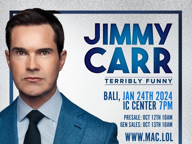 Sedangkan di Bali, Jimmy Carr bakal hadir di IC Center pada 24 Januari pukul 19.00 waktu setempat.