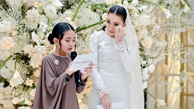 Terlihat pada beberapa foto, Ayu Ting Ting mengusap air matanya saat mendengarkan putri semata wayangnya memberikan sambutan. Suasana haru juga terekam saat beberapa tamu juga keluarga Lettu Muhammad Fardhana mengusap air mata.