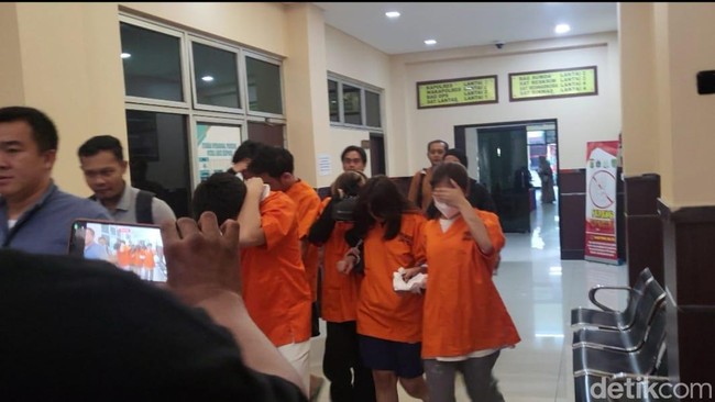 Chandrika Chika dan lima temannya terlihat menunduk saat dibawa polisi menuju pusat rehab BNN Lido. Enam anak muda itu direkomendasikan untuk rehabilitasi usai menjalani asesmen.