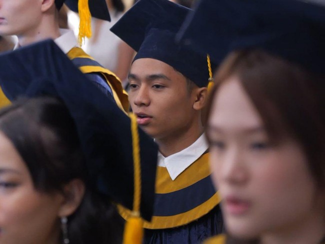 Jakarta - Betrand Peto menyelesaikan jenjang pendidikan SMA. Penuh senyum bahagia, inilah potret Betrand Peto wisuda didampingi Sarwendah dan Ruben Onsu.