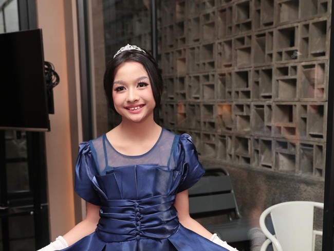 "Hari ini aku pakai kostum Cinderella. Ini yang milihin mama," tutur Dealova, yang tampil cantik mengenakan gaun dari Minieme Kids.