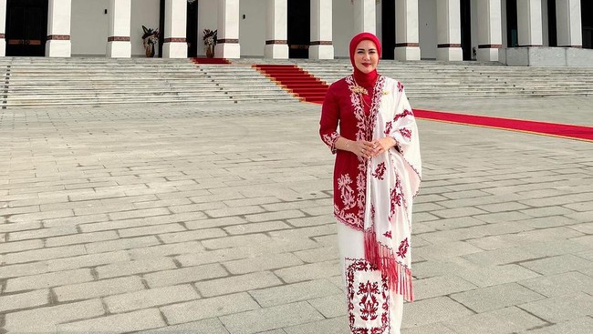 Artis dan model Juliana Moechtar mengunggah foto saat berada di pelataran Istana Negara Ibu Kota Nusantara di Kalimantan Timur. Kehadiran Juliana Moechtar di Istana turut mendampingi suami yang bertugas.