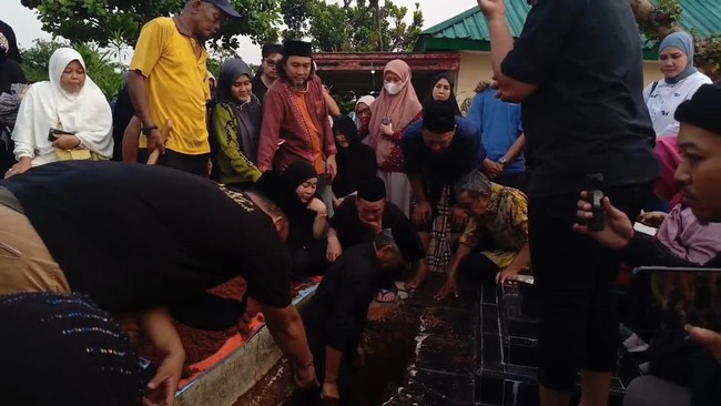 Suami Syifa juga terlihat menggendong anak keduanya itu sendiri sebelum dimakamkan. Ia pun tidak berhenti menangis saat menggendong anak keduanya itu ke tempat peristirahatan terakhirnya.