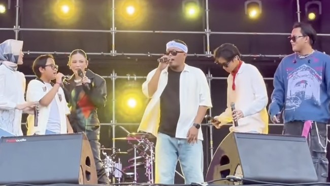 Sule bersama adik-adik Rizky Febian terlihat hadir memberikan kejutan dan ikut naik ke atas panggung dalam acara di Gambir Expo Kemayoran, Jakarta Pusat, Minggu (22/9/2024).
