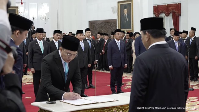 Setelah pengucapan sumpah dan janji, Yovie Widianto maju ke depan Prabowo Subianto menandatangani berita acara penugasan. Kemudian Presiden Subianto didampingi Wakil Presiden Gibran Rakabuming Raka serta Ketua DPR RI Puan Maharani memberikan salam dan selamat.
