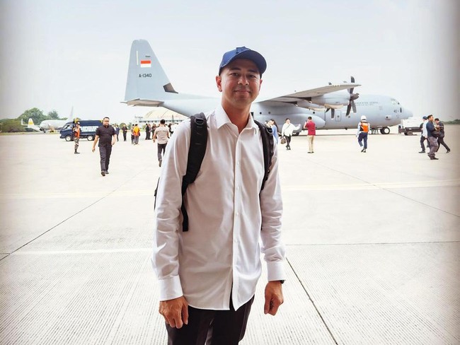 Jakarta - Raffi Ahmad ikut dalam kegiatan pembekalan dari Presiden Prabowo Subianto di Akademi Militer, Magelang, Jawa Tengah. Raffi abadikan momen naik Super Hercules.