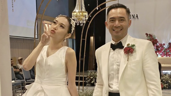 Acara pemberkatan dan pernikahan digelar hampir menjelang malam hari. Pemberkatan dan resepsi pernikahan intimate itu digelar di salah satu hotel kawasan Cilandak, Jakarta Selatan.